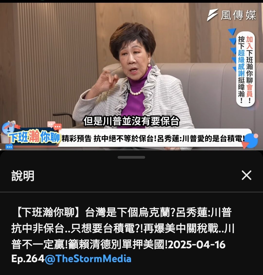 呂秀蓮指出,川普身邊有一群人就是投機、軍火商,告訴川普不值得為台灣再犧牲什麼,