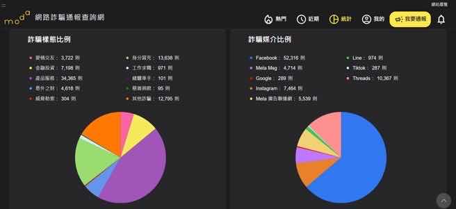網路詐騙通報查詢網揭露,近30天網路詐騙情況,其中詐騙媒介比例以臉書最高,超過5