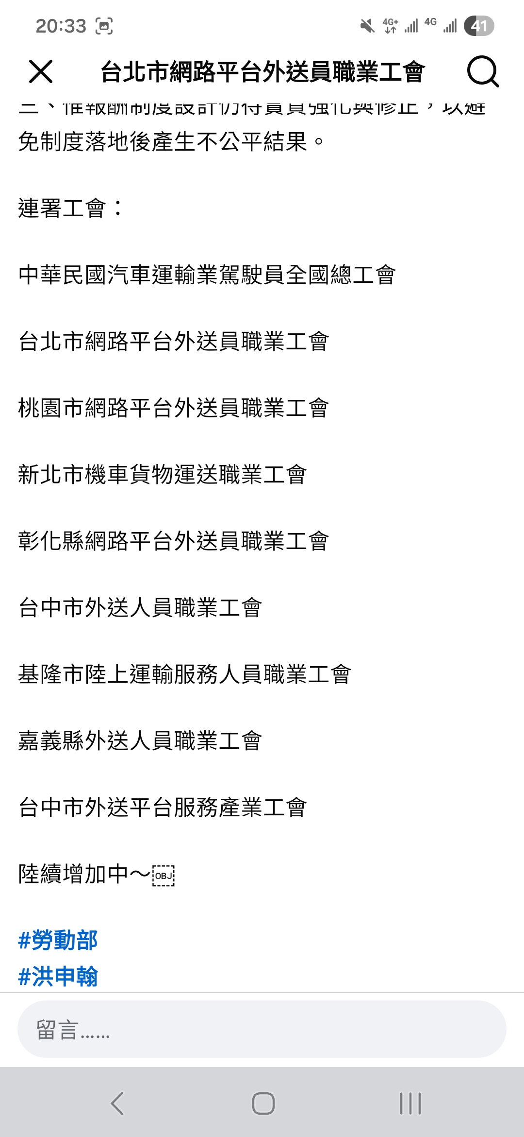 結果..... 原來是一堆其他的外送工會同意