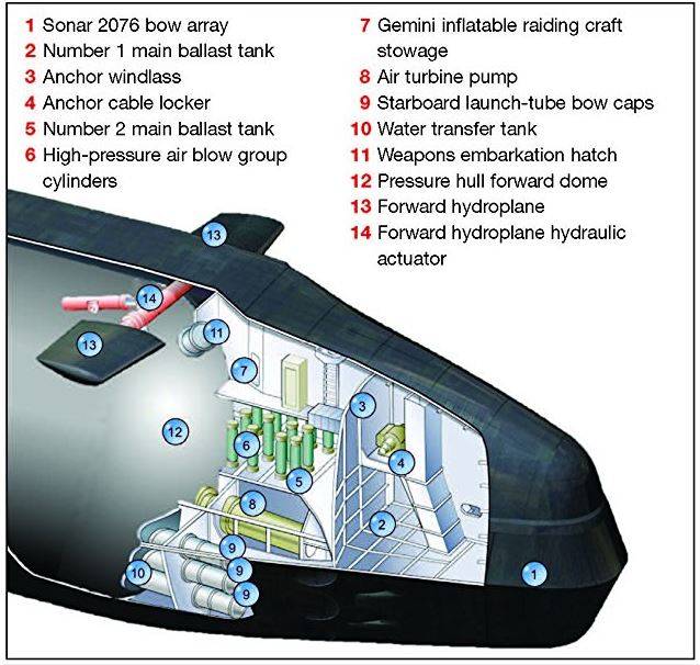 圖是很舊的設計,錨在潛艦前方下側,而不是正下方