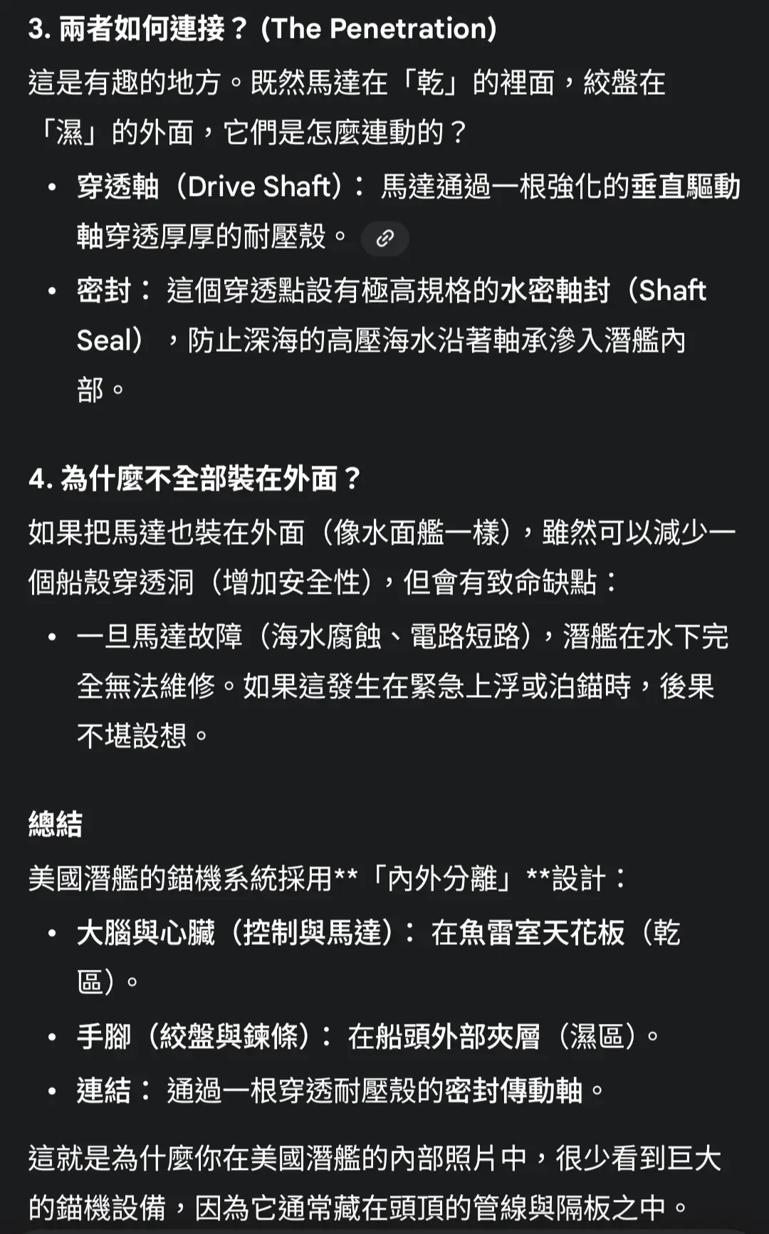 公開資訊,潛艦結構剖面圖還不少,但錨機的傳動,