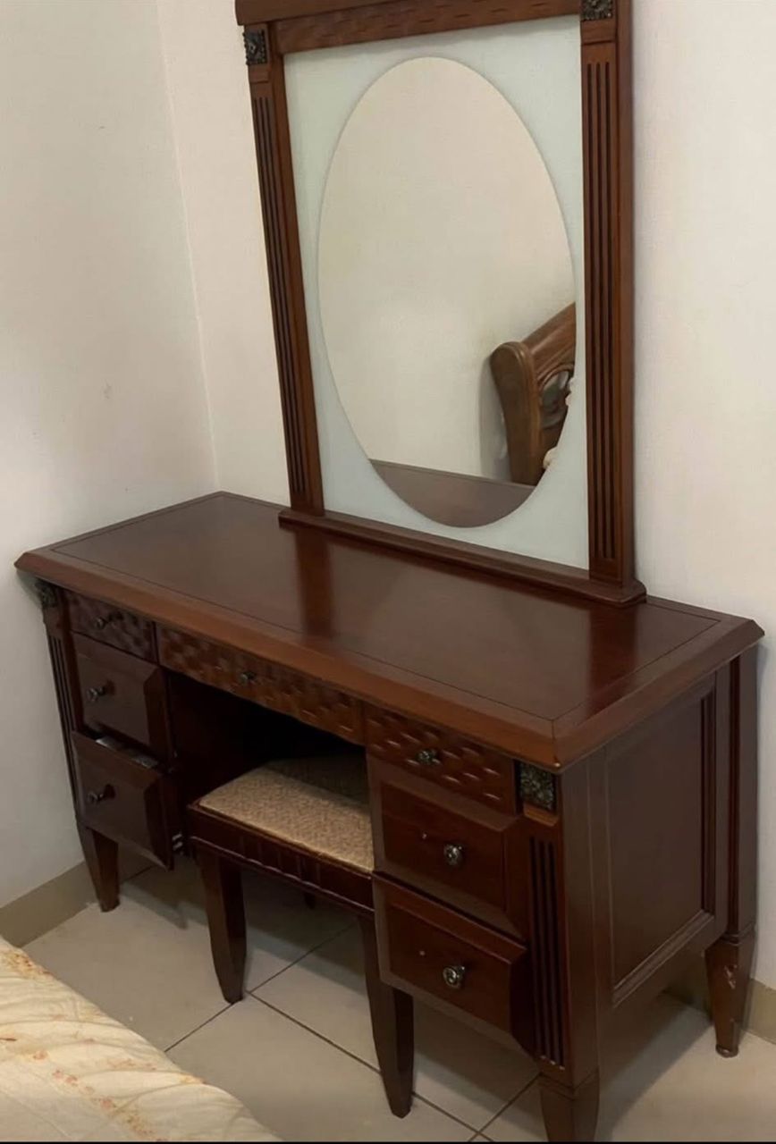 出售物品:典雅木質梳妝台+椅|大面圓形化妝台 (118長 50寬 170高)