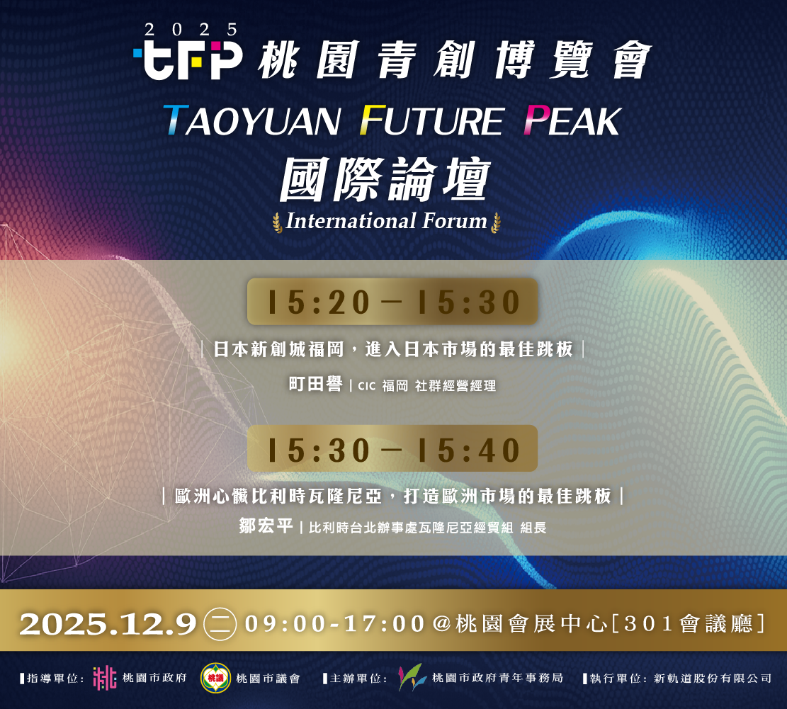 「2025 桃園青創博覽會 Taoyuan Future Peak」由桃園市政府青年事務局主辦,新軌道繆