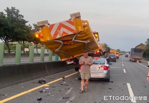 確切死因還有待檢調釐清,但這起事故畫面看起來像是「緩衝車整組被翹起,往後車駕駛